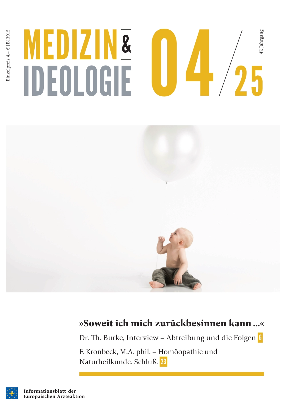 Unsere Zeitschrift Medizin und Ideologie bietet Beiträge von Autoren verschiedener Disziplinen zu den vielfältigen bioethischen und anthropologischen Fragestellungen. Denn diese betreffen nicht nur die Medizin und die Ärzte, sondern die Gesellschaft insgesamt. Und ihre Einschätzung und Lösung braucht sowohl fachliches Wissen wie eine stimmige geistige Orientierung.